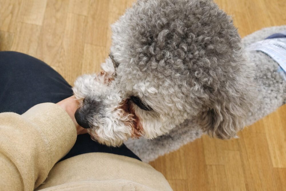 わんちゃんと飼い主さんに寄り添っている