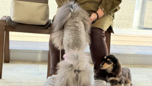 わんちゃんと飼い主さんに寄り添っている